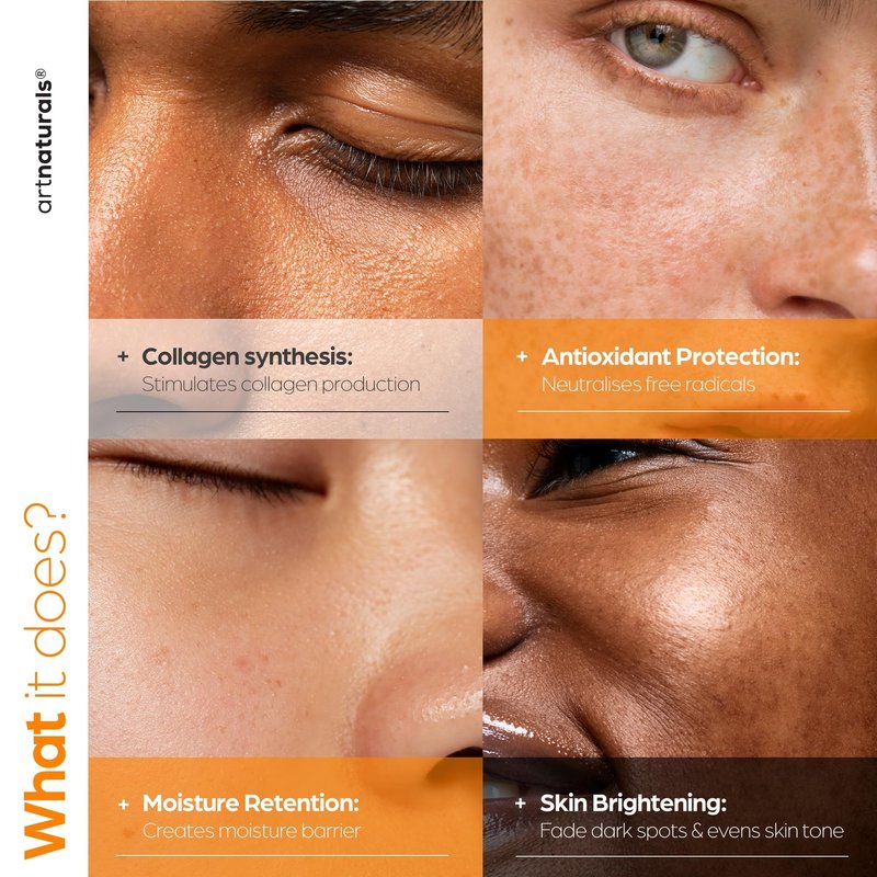 - PLUMPED, MOISTURIZED AND GLOWING : As its own Collagen Production is Stimulated.