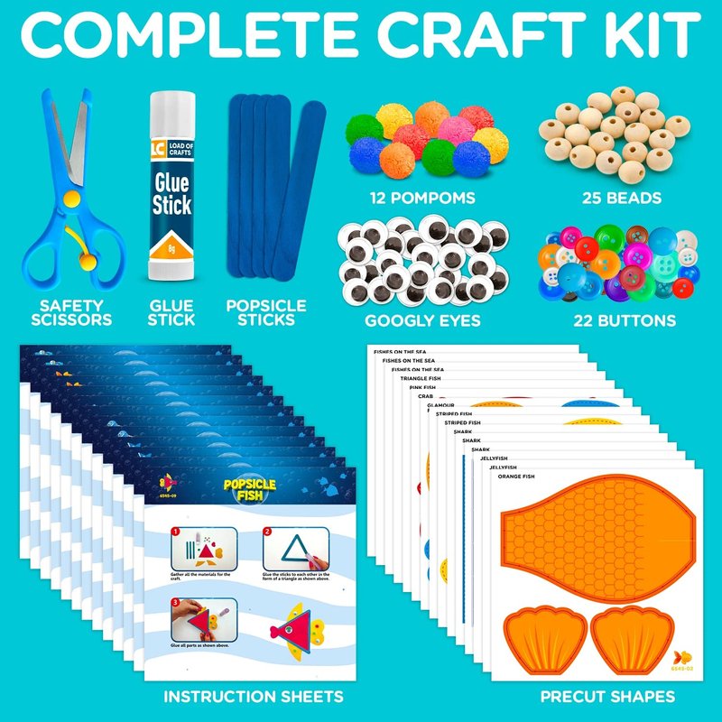 - Fun gift art & crafts kit for kids 3-6 to craft a popsicle fish, pink fish, shark, jellyfish, striped fish, glamour fish, crab, gold fishes, and friendly fishes