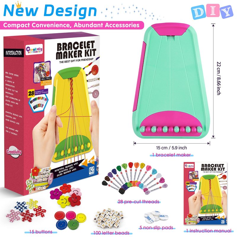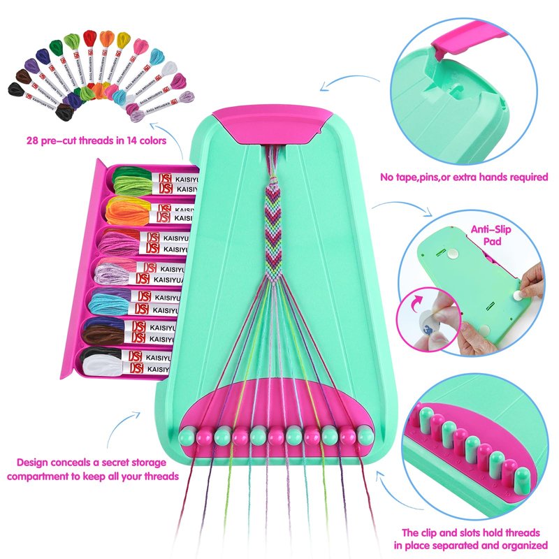 - Create Your Own Friendship Bracelets:Unique and incredibly fun! You can craft your own bracelets using the friendship bracelet maker,and it comes with an array of rich accessories. Get creative with your friends and design fantastic bracelets that you'll adore. The bracelet maker also features a hidden storage compartment to neatly store all your threads