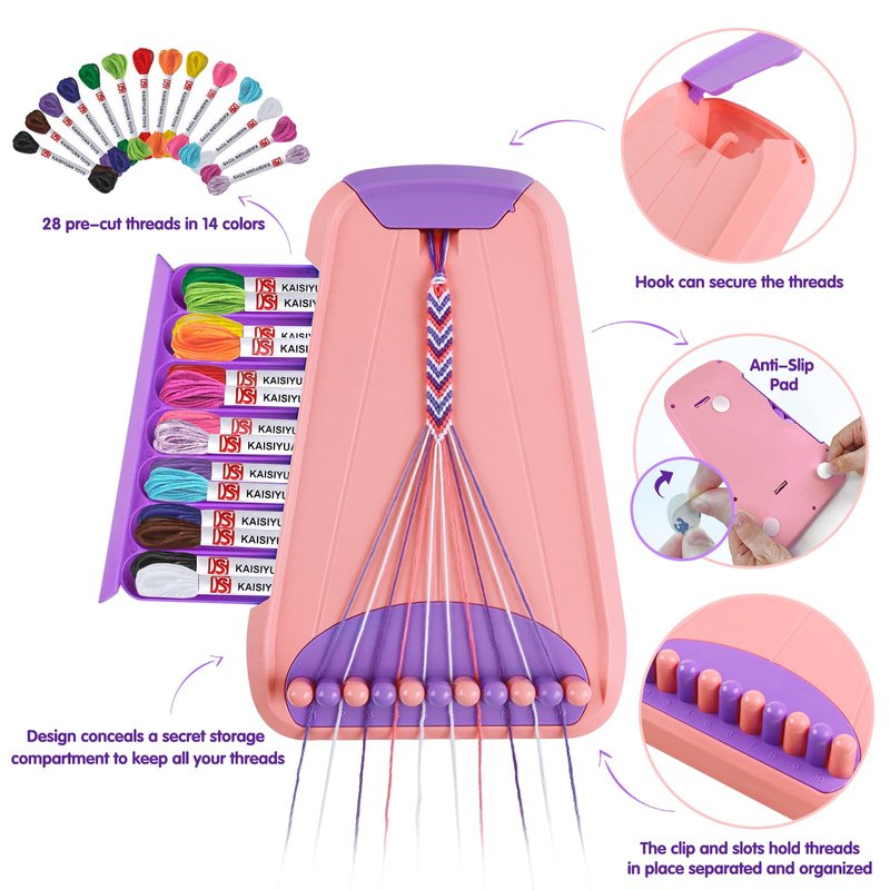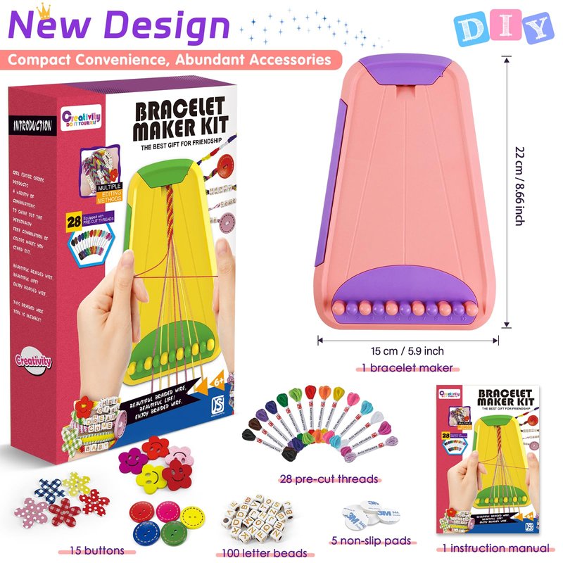 - Create Your Own Friendship Bracelets:Unique and incredibly fun! You can craft your own bracelets using the friendship bracelet maker,and it comes with an array of rich accessories. Get creative with your friends and design fantastic bracelets that you'll adore. The bracelet maker also features a hidden storage compartment to neatly store all your threads