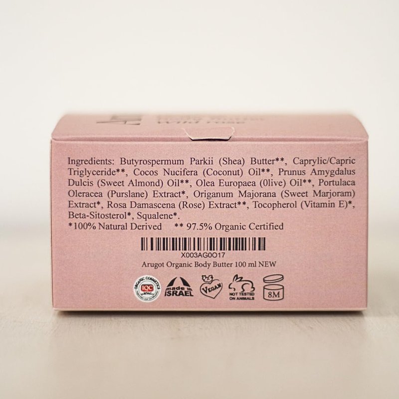 Arugot Natural Body Butter is a rich and nourishing body butter that moisturizes the skin, leaving it feeling soft, nourished, and repaired. It is enriched with organic shea butter for deep nourishment, vitamin E for hydration, and pure oils such as coconut, olive, and almond for soft skin.