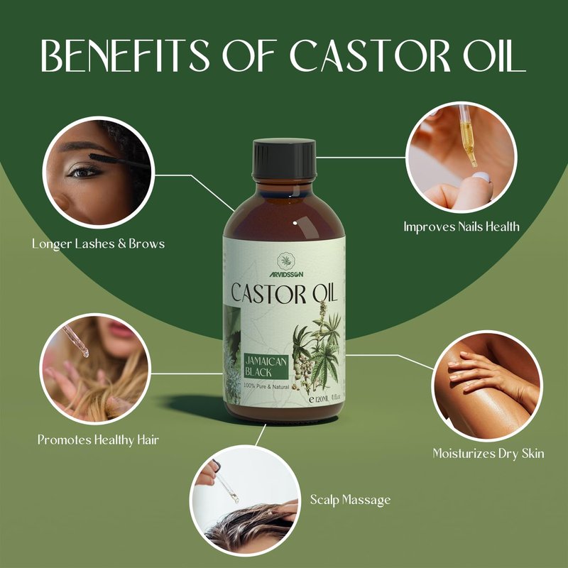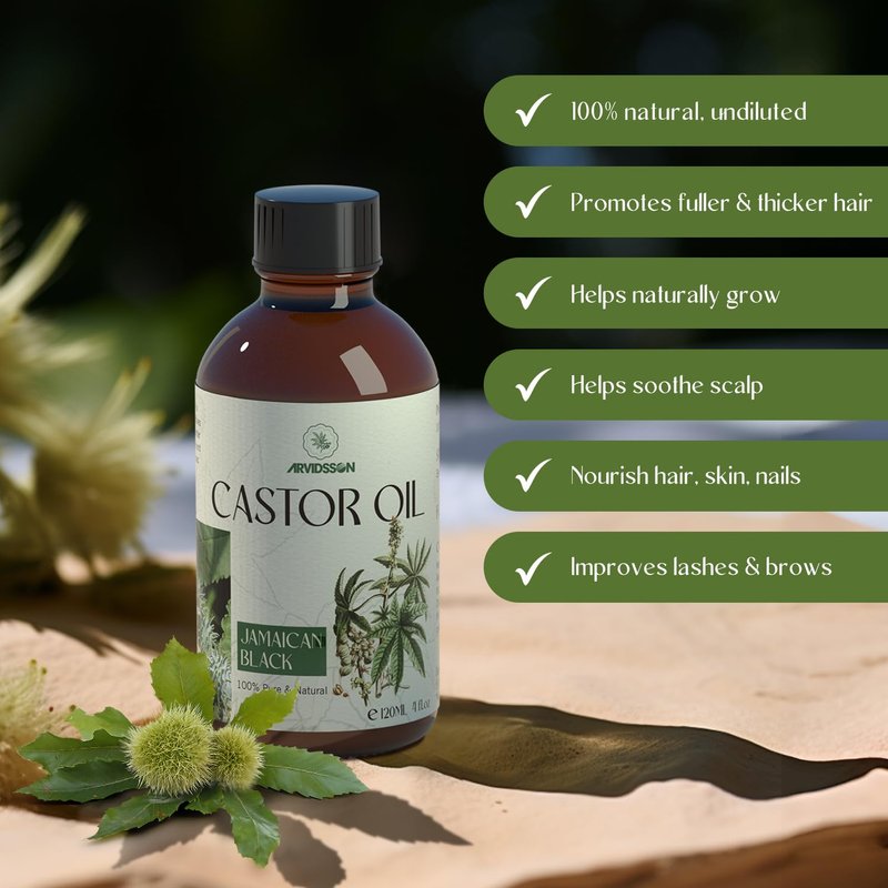 - ✅ EASY TO USE: ARVIDSSON Jamaican Black Castor Oil is packed in amber shade bottle with a glass droper and comes with extra eyelash and brows brushes, which is easy to apply any points of your body.