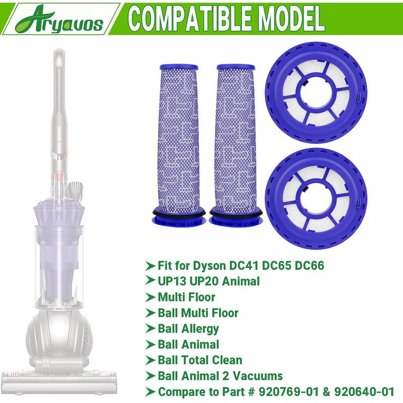 Aryavos Filter Replacement for Dyson DC41 DC65 DC66 UP13 Animal UP20 Ball Animal, Multi Floor and Ball Vacuums, Replace Part #920769-01&920640-01,2 Pack HEPA Post Filters & 2 Pack Pre Filters