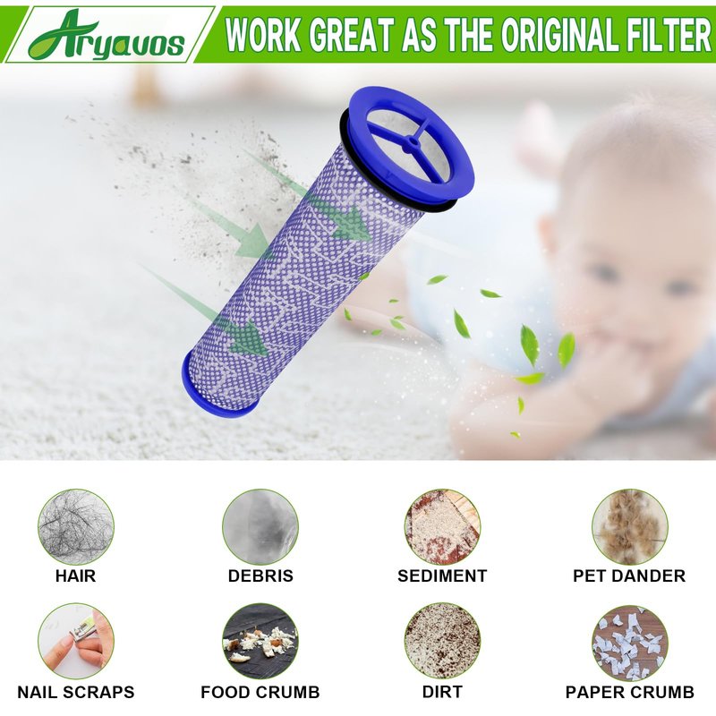 - STRONG-EFFICIENCY FILTER - Premium Post filter and Reusable, Washable Pre filter. Replaces Part # 920769-01 & 920640-01. Our animal 2 filter replacements for dyson can block pet dander and other particles as small as 0.3 microns in size.