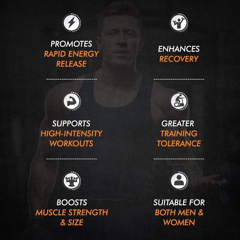 - REDUCES MUSCLE FATIGUE: Creatine helps reduce the onset of muscle fatigue by replenishing ATP levels in the muscle cells more rapidly, allowing for sustained energy availability. Creatine helps buffer the effect of lactic acid accumulation during intense exercise, thereby delaying the onset of muscle fatigue and discomfort.