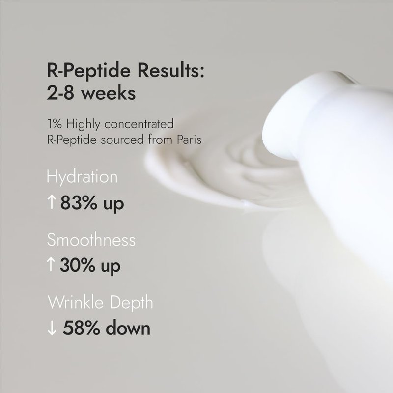 - R-Peptide RESULTS: R-Peptide is a naturally derived neuro-calming peptide clinically proven and backed by research from Paris. In just 2-8 weeks of use, expect impressive hydration levels boosted by 83%. Witness a reduction in wrinkles depth by 58%, resulting in smoother, more youthful-looking skin with a 30% increase in smoothness. Discover the transformative power of R-Peptide and tap into the potential for achieving radiant, youthful skin that defies the signs of aging.