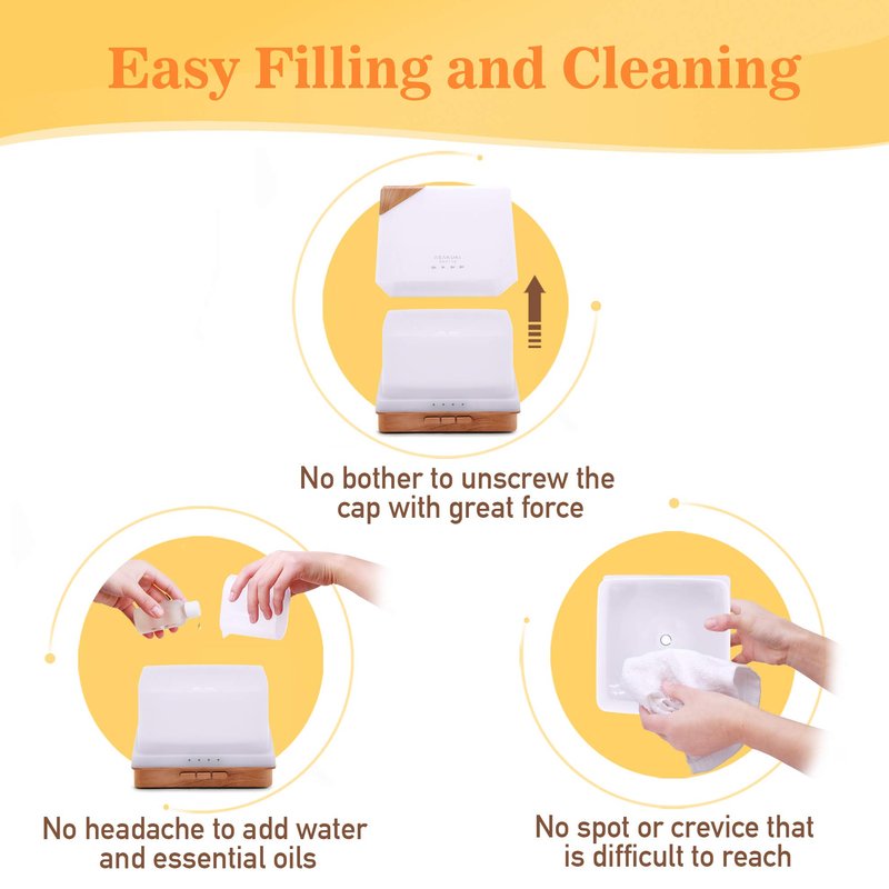 - [5-In-1 Aromatherapy Device] This ultrasonic essential oil diffuser is an amazing multifunction aromatherapy device unlike any other you've ever used. It features a large and easy to clean 700ml water tank, 7 different LED light colors, multiple mist diffuse modes, as well as a safety auto-switch that prevents it from overheating in case it runs out of water.