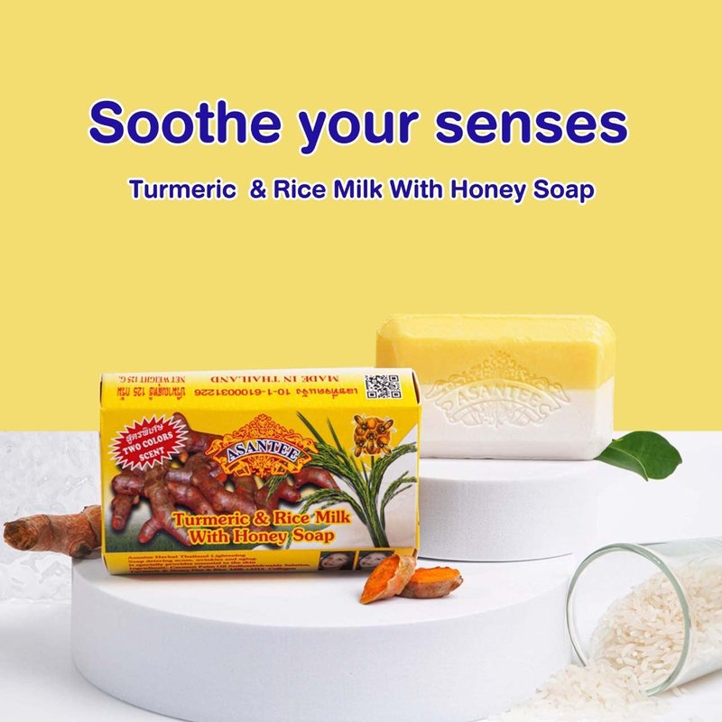 ASANTEE Rice Milk & Turmeric Soap Bar - Luxurious Body Soap for Soft, Clear, and Radiant Skin - Scent Long-Lasting 125 g.