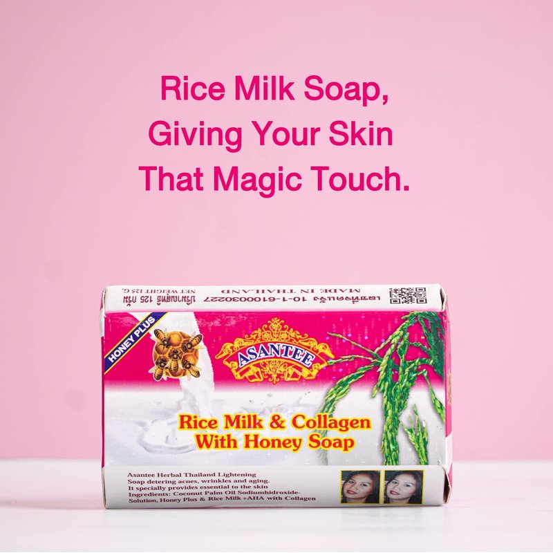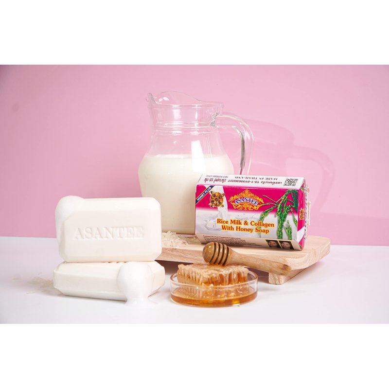 ASANTEE Rice Milk with Collagen and Honey - Luxurious Body Soap for Soft, Clear, and Radiant Skin - Scent Long-Lasting 125 g.