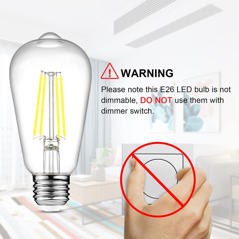 - Ascher Pack of 4 Units E26 LED Filament bulbs replace 60W incandescent bulb by 6W LED, save over 90% on electricity bill of lighting. NOTE: This E26 LED bulb is not dimmable, please DO NOT use them with dimmer switch.