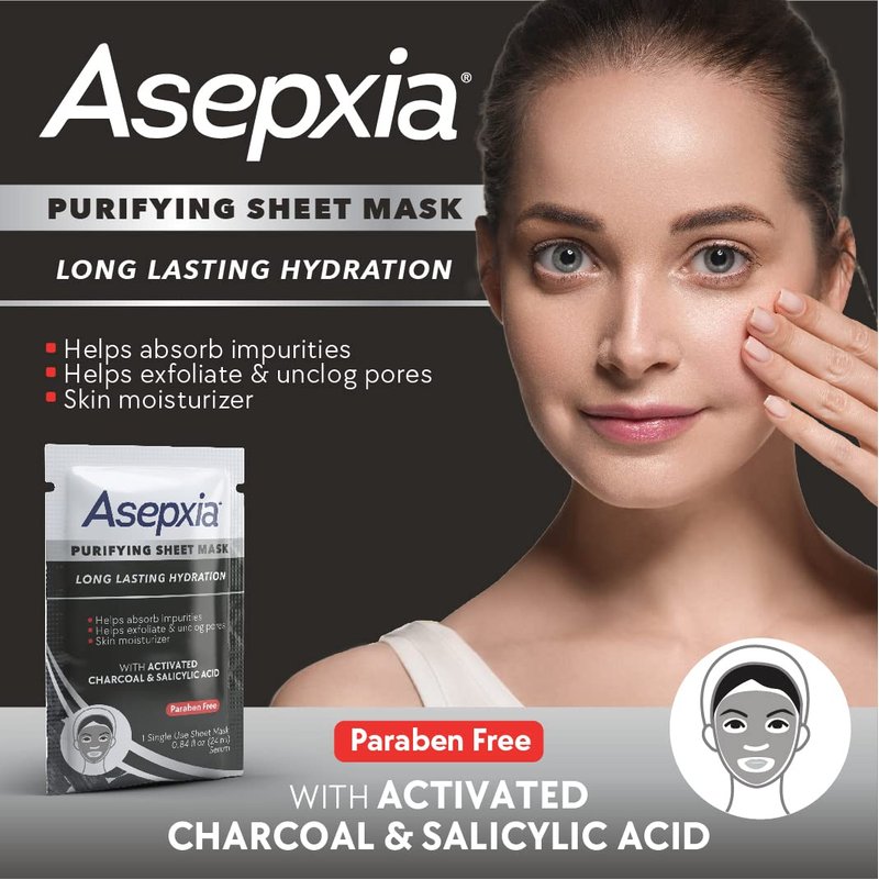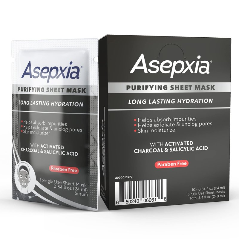 Asepxia Oil-Free Purifying Facial Sheet Mask with Activated Charcoal & Salicylic Acid, 10 Sheet Masks [PLS CONFIRM QTY]