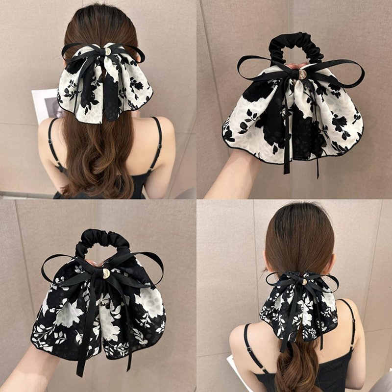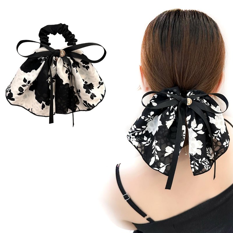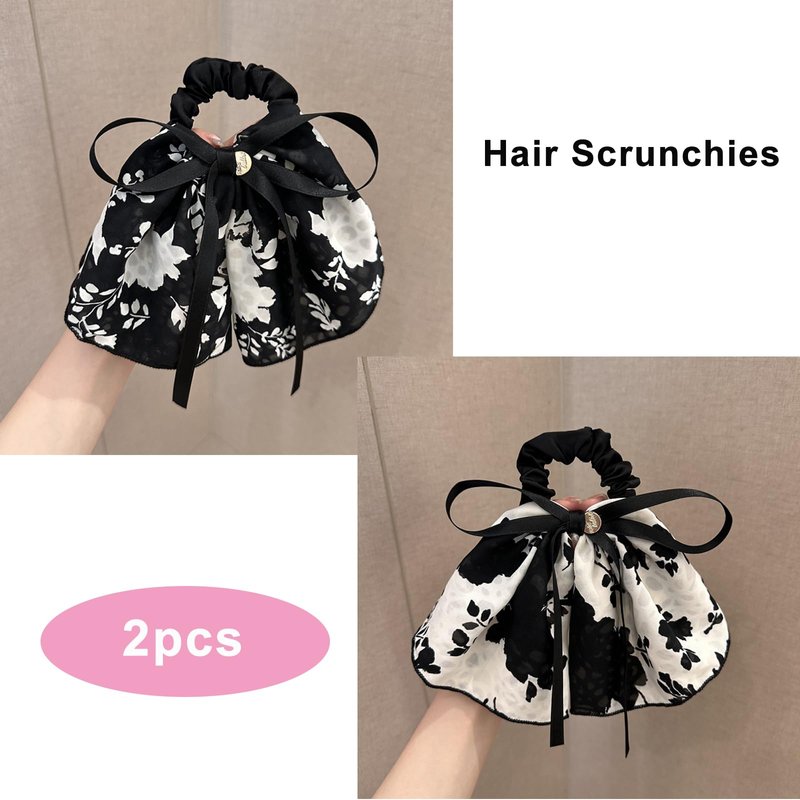 - Package include 2pcs hair scrunchies with large bows, black and white print.