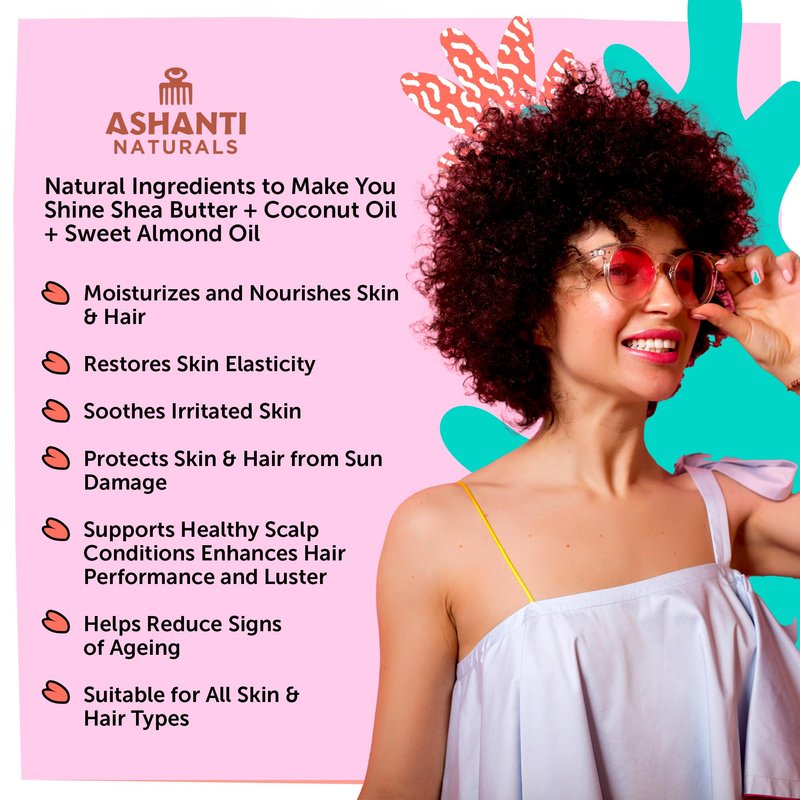 - Convenient Wonder: Experience the ease of using raw unrefined shea butter with Ashanti Naturals. Carefully processed to provide maximum nutrients, our raw shea butter hair products, face care, and body moisturizers offer a whipped and creamy texture for smooth and effortless application.