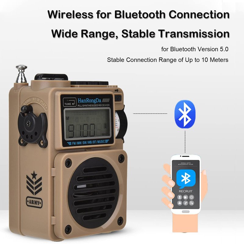 ASHATA Portable Full Band Digital Radio, FM/WB/Shortwave/Medium Radio with LCD Display, Alarm Clock, Speaker, for Bluetooth, 6 EQ Modes, FM/MW/SW/WB/BT/Music Receiver (Khaki)