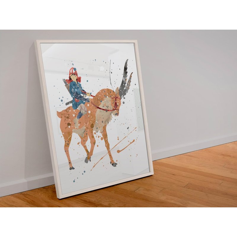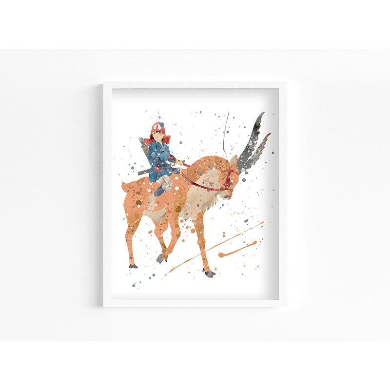 Ashitaka and Yakul Prints, Anime Watercolor, Nursery Wall Poster, Holiday Gift, Kids and Children Artworks, Home and Room Digital Art, Intended for Princess Mononoke