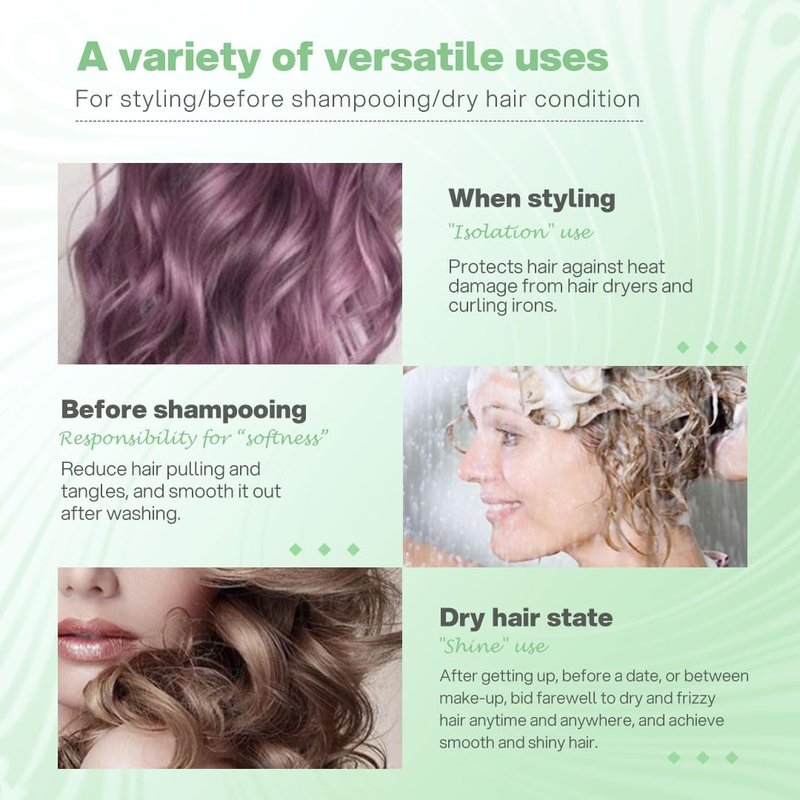 - Direction for use:1. Apply to dry hair.2. Warm the serum in your hands and finger comb through the mid-lengths and ends.3. Apply to the hairline and part to reduce flyaway.4. You can also apply it to damp hair before heat styling