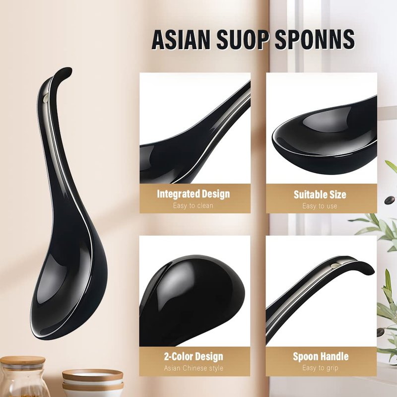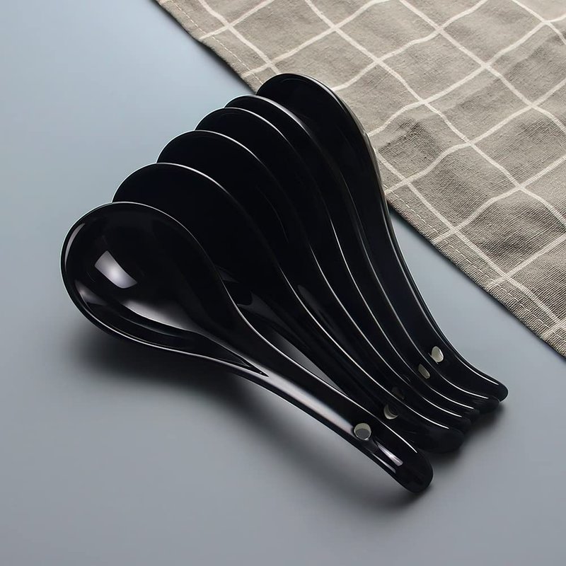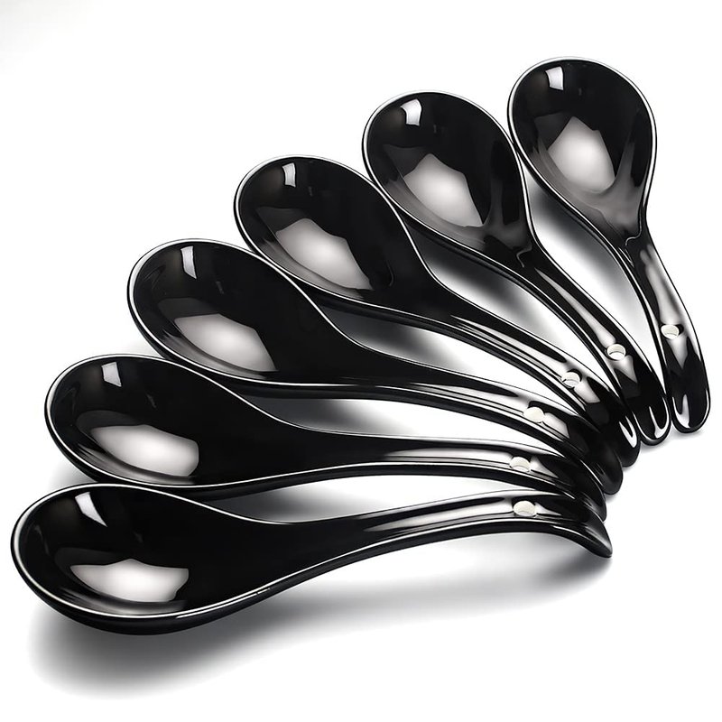 - 【STURDY PORCELAIN】The Asian soup spoons set is made of ultra-fine porcelain that is high-fired for strength and durability. The fine bright black glazing facet gives an elegant and fresh look that suits any season and table setting. These spoons are non-plastic, non-metallic, and won't get moldy, bend, rough, greasy or oily after washing.