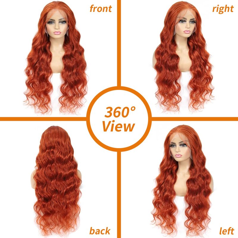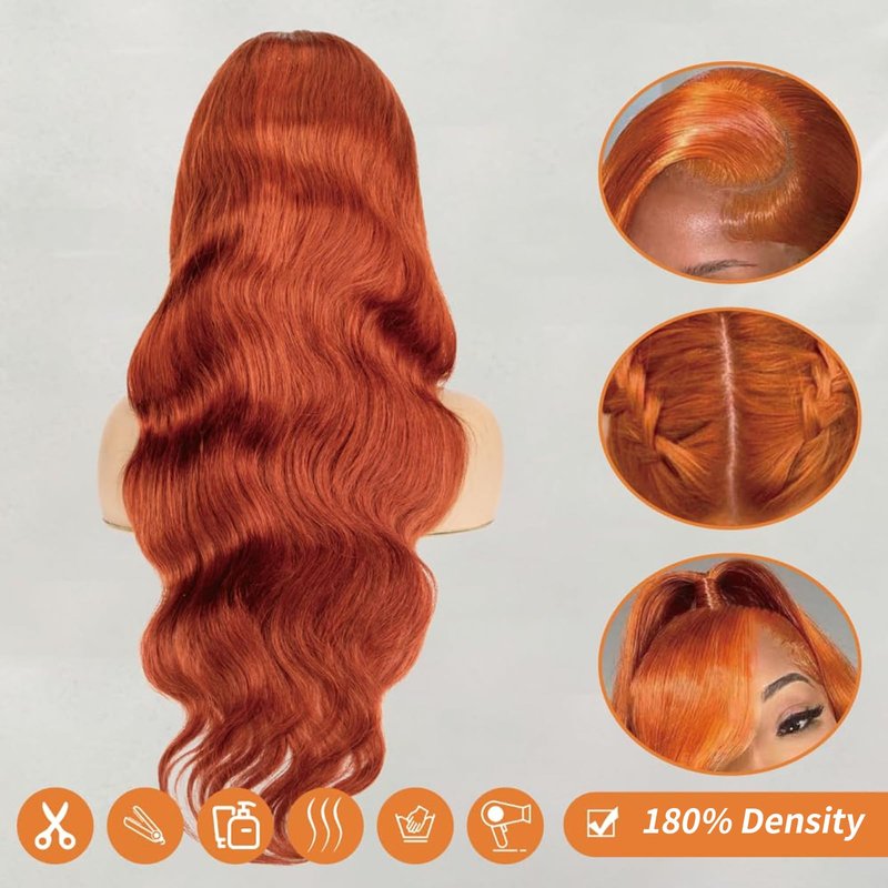 - 【Ginger Lace Front Wigs Human Hair Material】:100% Brazilian Virgin Hair, clean, healthy, soft, and bouncy, free from chemicals. Dyed using natural plant-based dyes, making this ginger orange wig look incredibly natural and beautiful.