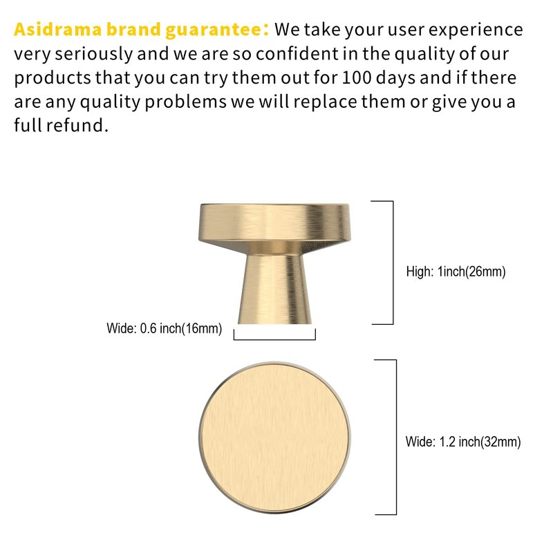 - Measurement: Diameter 1.2"(32mm); Base Diameter: 0.6"(16mm) ; Height: 1"(26mm); Please check the Size of handles you require carefully before purchasing.