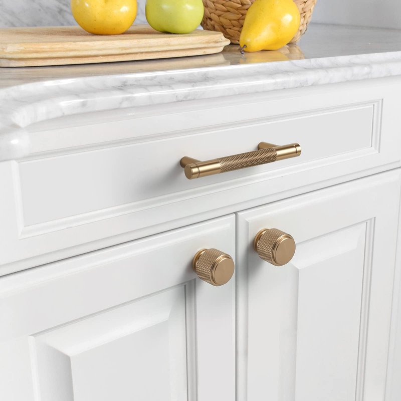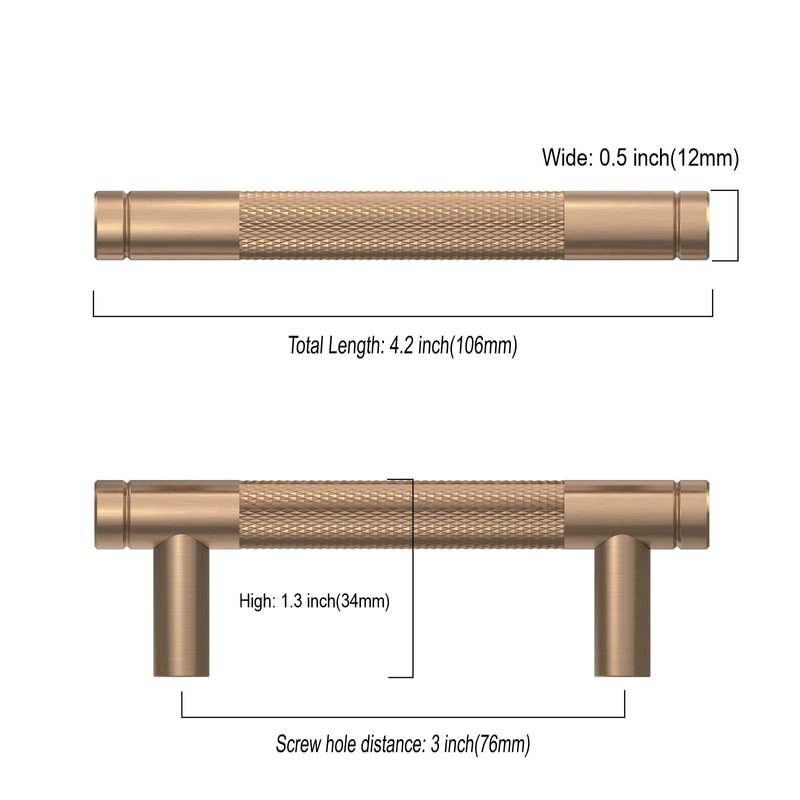 Asidrama 10 Pack 3 Inch(76mm) Champagne Bronze Cabinet Pulls Knurled Cabinet Handles Cupboard Handles Gold Kitchen Cabinet Hardware for Cupboard Drawer Pulls