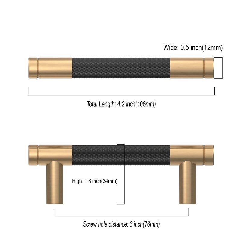 Asidrama 10 Pack 3 Inch(76mm) Matte Black and Champagne Bronze Cabinet Pulls Knurled Cabinet Handles Cupboard Handles Kitchen Cabinet Hardware for Cupboard Drawer Pulls