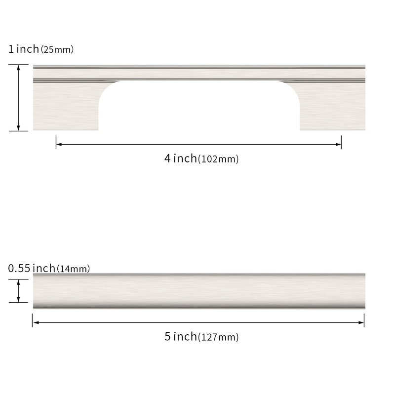 - Measurement: Hole Centers(CC):4 inch(102MM); Overall Length:4.9 inch(127MM); Width:0.55 inch(14MM); Projection:1 inch(25MM); Please check the Size of handles you require carefully before purchasing.