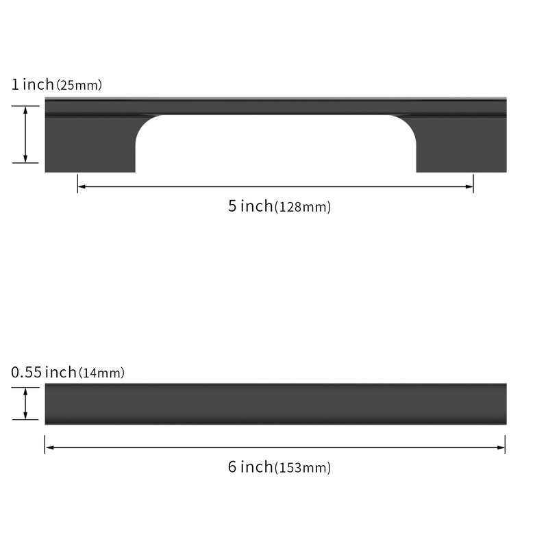 - Measurement: Hole Centers(CC):5 inch(128MM); Overall Length:5.9 inch(153MM); Width:0.55 inch(14MM); Projection:1 inch(25MM); Please check the Size of handles you require carefully before purchasing.
