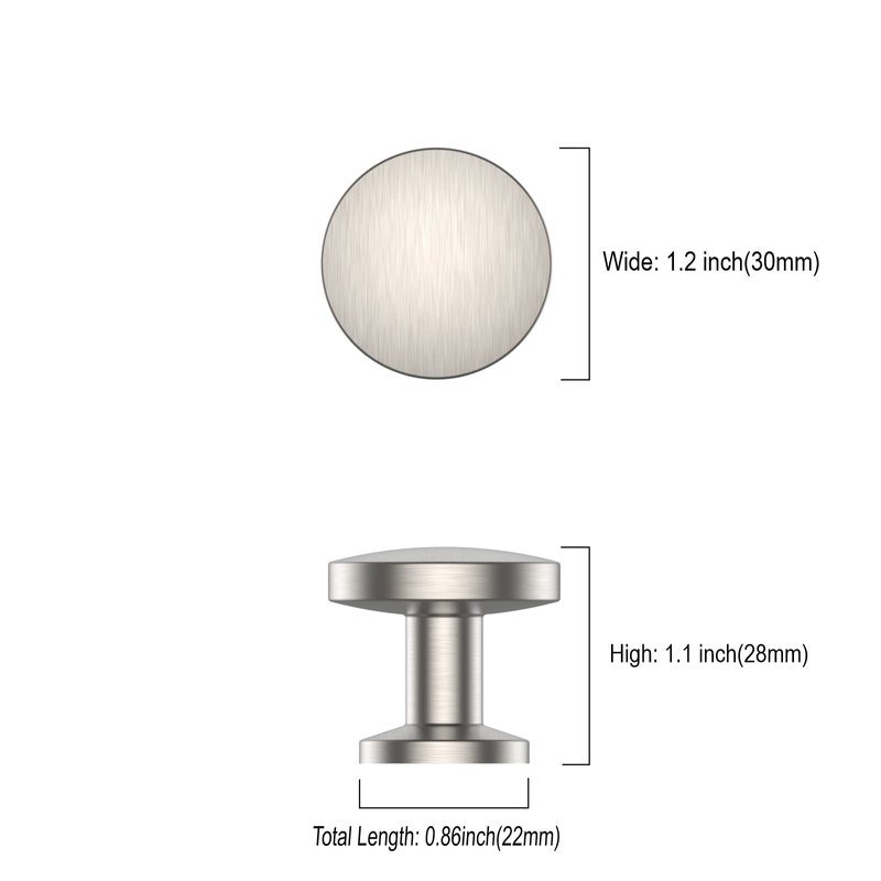 - Measurement: Diameter 1.2"(30mm); Base Diameter: 0.86"(22mm) ; Height: 1.1"(28mm); Please check the Size of handles you require carefully before purchasing.