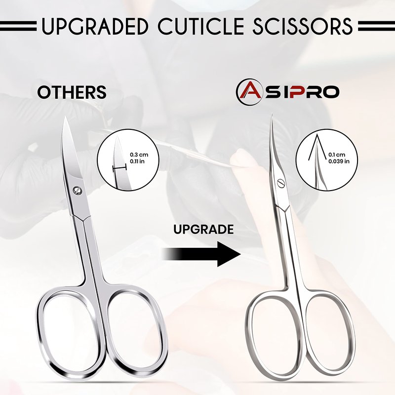 - Extra Sharp: Hand-sharpened ASIPRO cuticle scissors curved is crafted with high quality stainless steel, ensuring a lifetime of precision cutting as professional cuticle scissors these cuticle trimmer scissors provide stronger, & smoother, more precise trims.