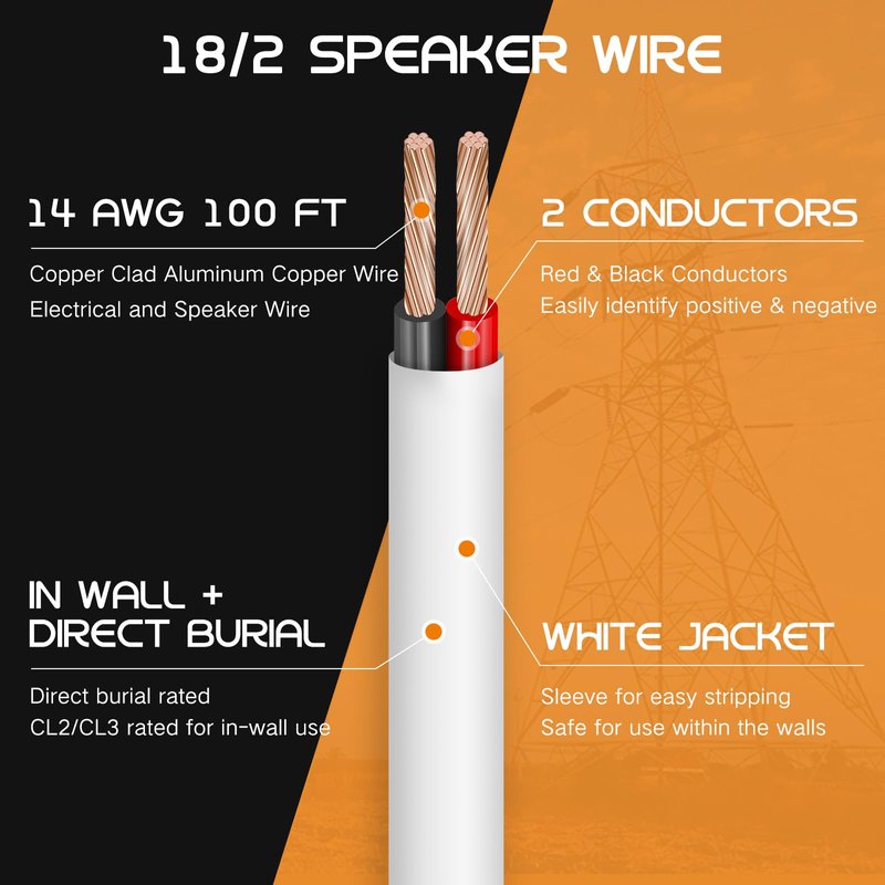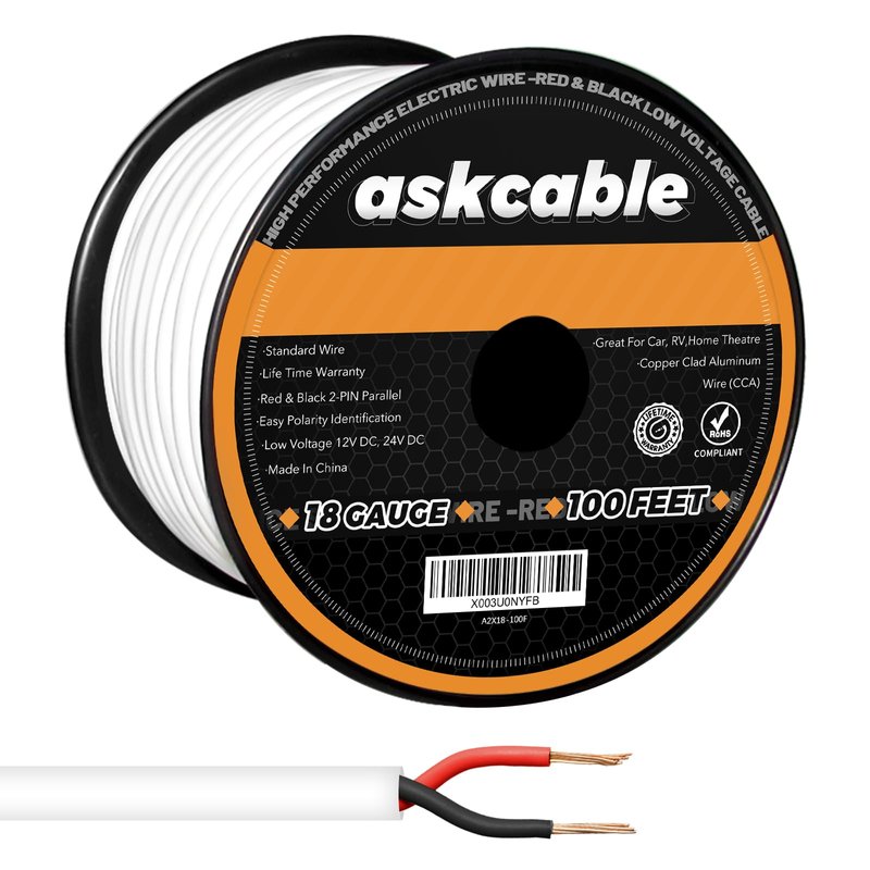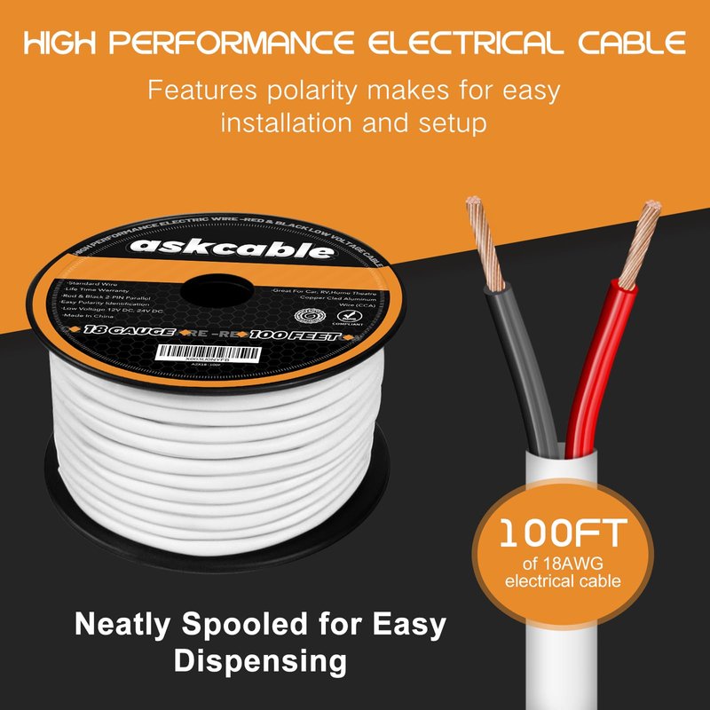 - 【High Quality】Askcable electrical wire is made of 18 AWG 100 FT with red and black 2 conductors and high quality PVC jacket, 18/2 cable rated CL2 for in-wall use, complies with fire safety for use inside the walls. good conductivity, high mechanical strengthfeatures, flame retardant, anti-aging, acid and alkali resistance and dampproof.