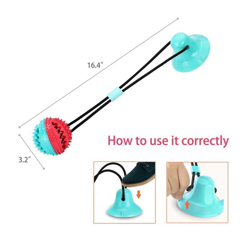 This dog toy good helper for your dog aggressive chewers. FEATURES: Dear puppy is alone at home, are you still worried? Kill the boring time, relieve the anxiety and stress, to make dogs’ life more fulfilling. Our tough chew toys for dogs can effectively help your dog release excess energy and prevent dog from bad behavior caused by long-term boredom. It enhances the dog's enthusiasm, and makes your relationship with the dog closer, improve the pet's intelligence and let its emotions be released.A best dog puzzle toys for your dog. Interactive dog toys designed with 360 degree rubber granular cleaner around outside, and a double-layered sharp tooth cleaning mechanism in order to clean dog's teeth efficiently. Designed with the new powerful sucker keeps the chew toy fixed and can interactively train the dog's bite force. This dog toys for aggressive chewers large breed meets different requirements of dogs’ daily life such as chewing, teething, training and interactive playing. Warm noted that the strong dog toys are NOT INDESTRUCTIBLE dog toys for aggressive chewers and don’t press suction cup on matte wooden floors, dusty walls and concrete surface. Specifications: Product Name: dog chew toy