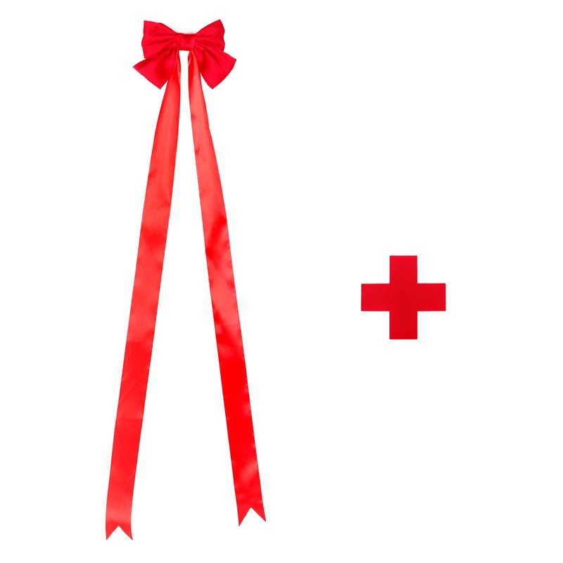 ASKUANG Silky Satin Long Tail Red Bow Hair Clip and Red Cross Shaped Clip Kit for Women Girls Daily Party Cosplay