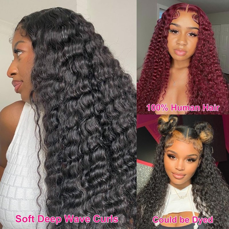 - Deep Wave Lace Front Wigs Human Hair Material: 13x4 Lace Front Wigs Human Hair, 100% Unprocessed 10A Brazilian virgin human hair deep wave lace frontal wigs, full and thick, health and comfort, soft and bouncy, can be dyed, bleached, straightened and restyled