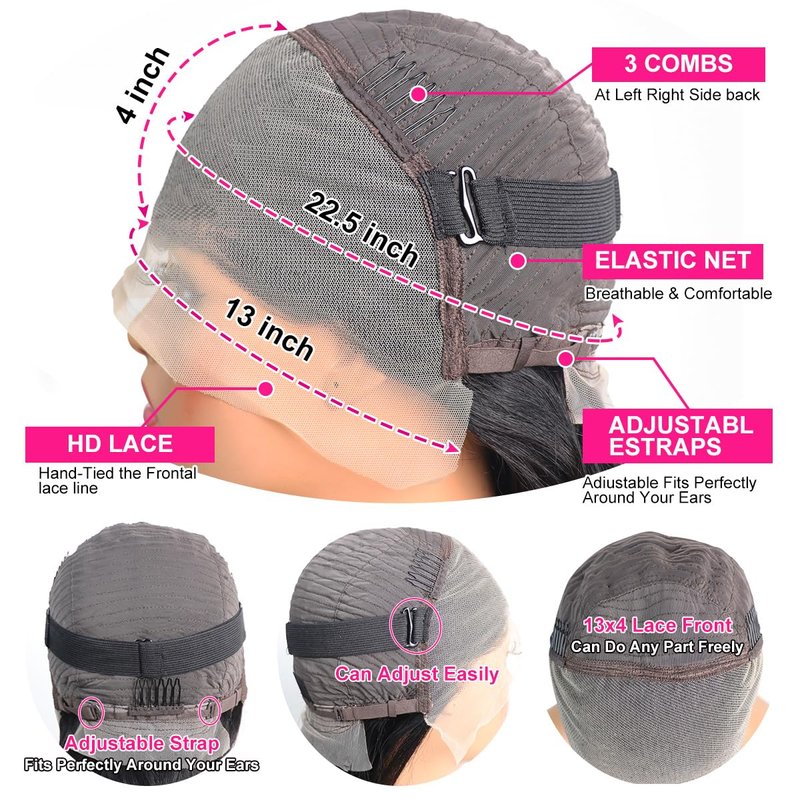 - Human Hair Wigs Cap: Deep wave lace front wigs human hair pre plucked, medium cap size(21.5inch - 22.5 inch), fit most people, with 3 combs and two adjustable straps make it easy to install, breathable & durable lace material make it more comfortable