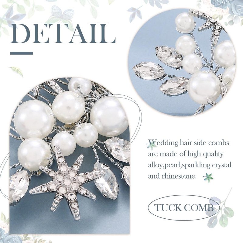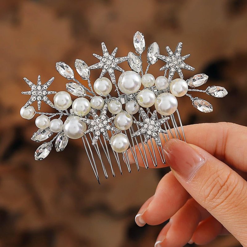 - Wedding hair comb is made of pearl,alloy,crystal,rhinestone and star.It won't fade and broken easily.