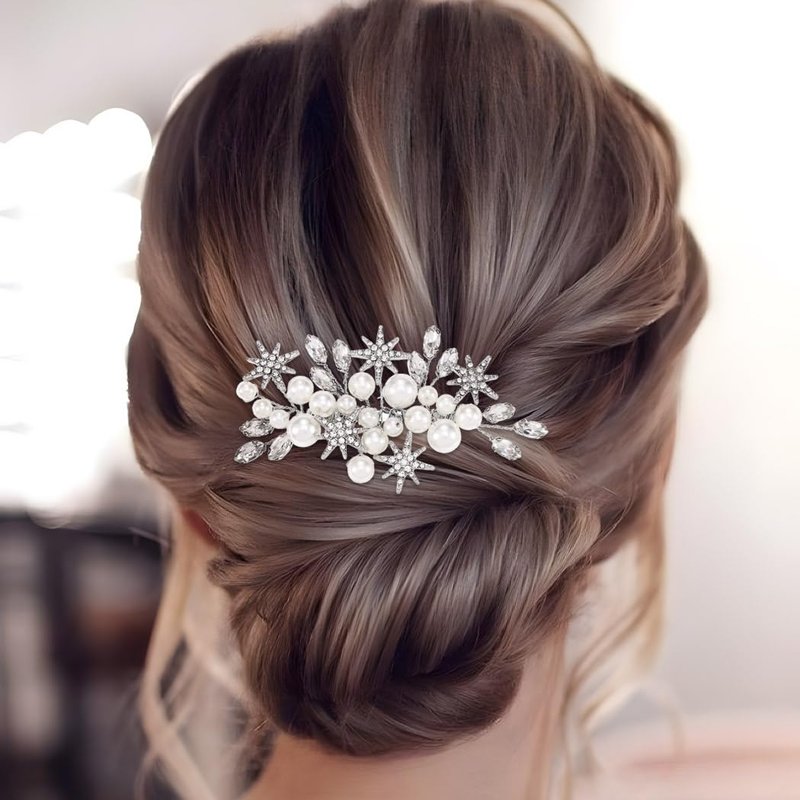 Asooll Pearl Bride Wedding Hair Comb Silver Rhinestone Bridal Side Combs Star Hair Accessories for Bride and Bridesmaid