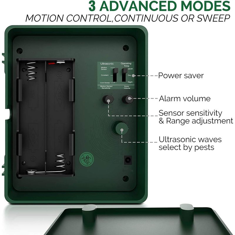 - 【Extended Coverage and Waterproof】The most powerful PIR infrared motion sensor available. Use the sonic repeller setting or adjust it so it is completely quiet and inaudible to humans.Unique seal and design let you set it anywhere. The Yard Sentinel comes with the longest extension cord on the market or use batteries (not included). For cabin and camp owner; Other power accessories are available.