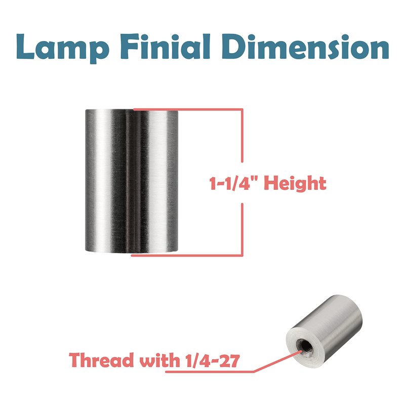 - Lamp finials are 1 3/8 inch tall, 3/4 inch wide and are threaded 1/4-27 and fit a standard lamp harp