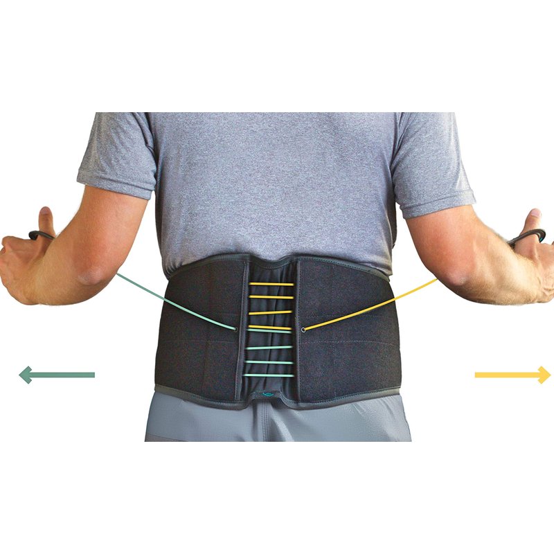 - Patented quick draw mechanical pulley system tightening of the back brace simple with two easy handle drawstrings.