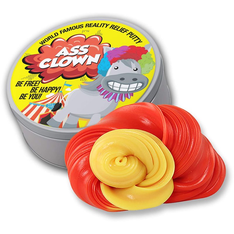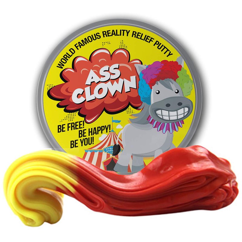 - CLOWN AROUND WITH COLOR-CHANGING STRESS PUTTY – Ass Clown Fidget Putty isn’t your ordinary therapy dough! When you’re dealing with a bona fide ass clown, you need a special kind of relief, so this awesome therapy putty changes colors! The heat-activated formula turns from red to yellow with the warmth of your hands.