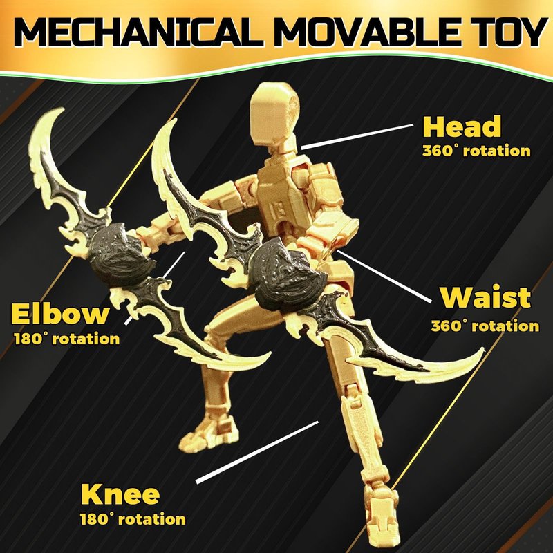 (Assembly Completed) Action Figure Set with Box, 3D Printed 13 Robot Titan 13 Action Figure, Action Figure Already Assembled(Golden Black)
