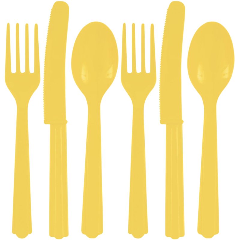Assorted Sunhine Yellow Plastic Cutlery (Pack of 24) - Elegant, Durable & Disposable Party Supplies for Every Occasion