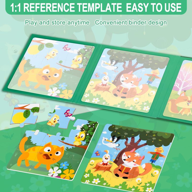 - 🧩[3-IN-1 ANIMAL PUZZLE] Each book has three sides with different illustrations, cat/fox puzzles, 9-12-16 pieces from easy to difficult, this is a challenging learning activity book that helps develop motor skills and improve logical thinking.