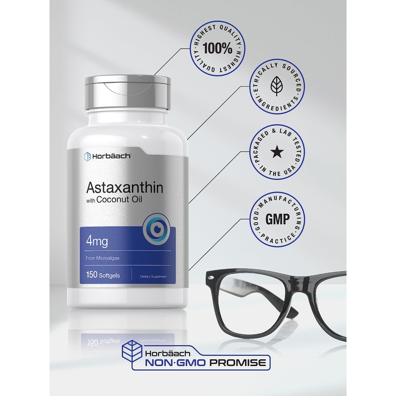 Horbaach Astaxanthin is derived from the finest source of Haematococcus pluvialis (algae extract), providing 4 mg of Astaxanthin with Coconut Oil in quick release softgels. Our gluten-free and non-GMO formula is made without artificial flavor, artificial sweetener, or preservatives, making it the perfect addition to your vitamins and supplements collection!