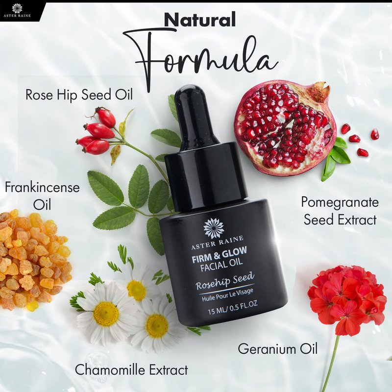 Aster Raine Facial Oil - Anti Aging Rosehip Seed, Pomegranate Face Oil - Hydrating, Firming Face Oils for Dry Skin - Fast Absorbing Daily Serum - Travel Friendly Moisturizer - 0.5 Oz
