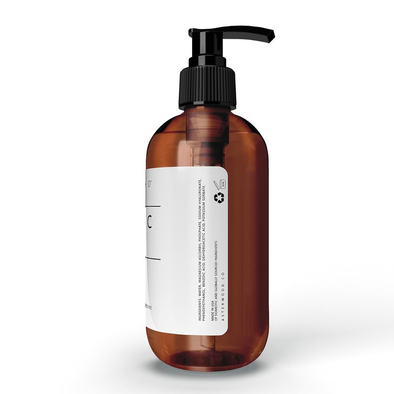 Made with the superior quality MAP Vitamin C, this anti-aging serum is oxygen stable, and pH balanced for a longer lasting, gentle way to repair the effects of sun damage. It is combined with our hydrating base of pure, vegan, organic Hyaluronic Acid. Our Vitamin C Serum with Organic Hyaluronic Acid May Include the Following Benefits: Superior Quality Potent MAP Vitamin C that is Oxygen Stable, and pH Balanced Decreases Appearance of Sun Spots with the Powerful Antioxidants Naturally Found in Vitamin C Prevents Further Breakdown of Collagen Reduces Fine Lines and Wrinkles for a Smoother, More Vibrant Appearance Enhances Skin Elasticity Evens Skin Tone for a Brighter, More Radiant Complexion Improves Skin Texture by Reducing Skin Problems Due to Age Deeply Moisturizes to Hydrate Dry, Dull Skin All Asterwood Serums are Free Of: Oils Fragrances Parabens Never Tested on Animals We offer a 100% money back guarantee. If you're not completely satisfied, contact us for a full refund without going through the trouble of returning the serum. Our Serums Can Sell Out Quickly as They are Made in Small Batches to Ensure Freshness. Click the "Add to Cart" Button Now to Guarantee Your Serum is Still in Stock. Made in the USA from domestic and imported synthetic ingredients.
