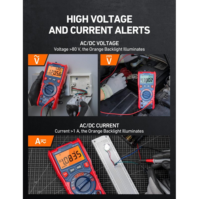 - Multifunctional - The DM2000 Multimeter accurately measures AC/DC Voltage, AC/DC Current, and Resistance. The voltage tester also supports Capacitance, Frequency, Duty Cycle, Diode, Continuity, Temperature, and NCV tests. With this tool, you can identify the root cause of electrical issues and make informed decisions.