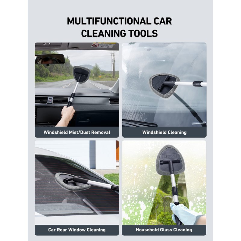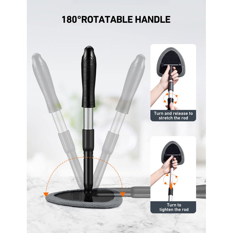 - Fast and Easy to Clean Auto Windshield: Clean car window interiors and exteriors without straining. No more hurting your back. With the extra longextension handle(longer than others) and bigger pivoting head getting to those hard-to-reach car window bases is simple.The twist lock on the handle is tight and it stays extended all the way.