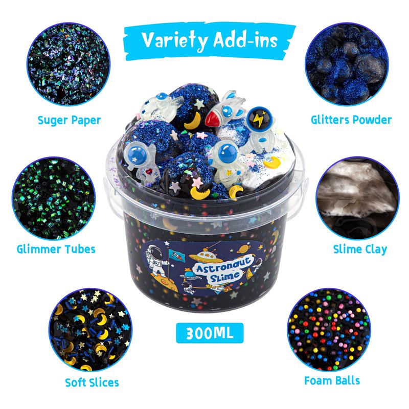 - 【Large Capacity & Variety Slime Add-ins】Each bucket comes packed with a generous amount of slime, containing 300ml/10 fl oz of pure joy! To enhance the fun, we have included 9 packs different slime add-ins with our slime kit. Making your own slime as Butter Slime, Crunchy Slime or Foams Slime through hands on exploration and discovery.