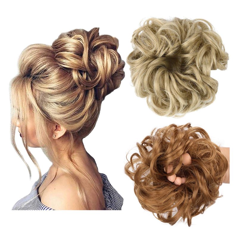 ASUITOFK Messy Bun Hair Piece Thick Updo Scrunchies Synthetic Hair Extensions Ponytail Hair Wig Hairpiece Dark Blonde
